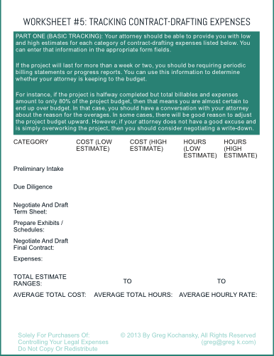 Controlling Your Legal Expenses - Worksheet #5: Tracking Contract-Drafting Expenses